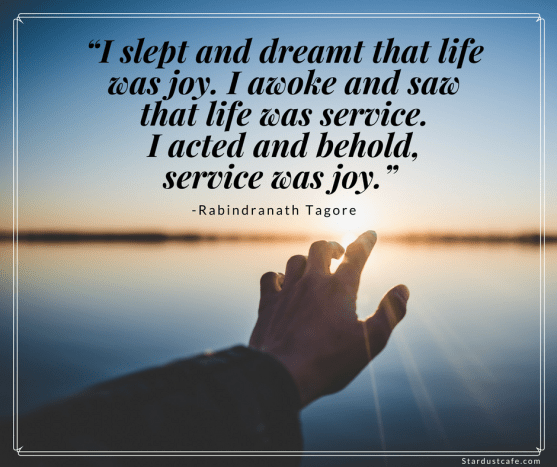“I slept and dreamt that life was joy. I awoke and saw that life was service. I acted and behold, service was joy.” -Rabindranath Tagore