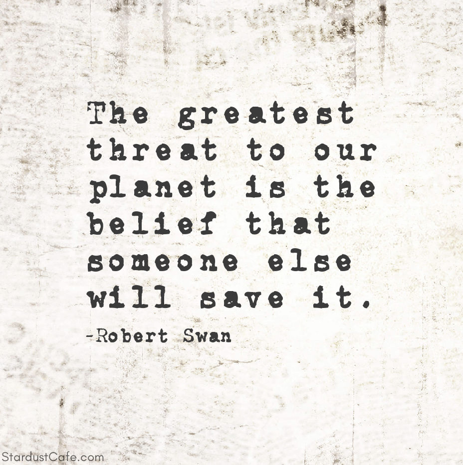 The greatest threat to our planet Posted on September 15, 2021 by Louise White The greatest threat to our planet is the belief that someone else will save it.-Robert Swan Share this: Click to share on X (Opens in new window) X Click to share on Facebook (Opens in new window) Facebook Like Loading...