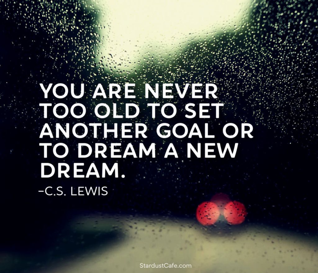 You are never too old to Posted on September 24, 2021 by Louise White You are never too old to set another goal or to dream a new dream.-C.S. Lewis Share this: Click to share on X (Opens in new window) X Click to share on Facebook (Opens in new window) Facebook Like Loading...