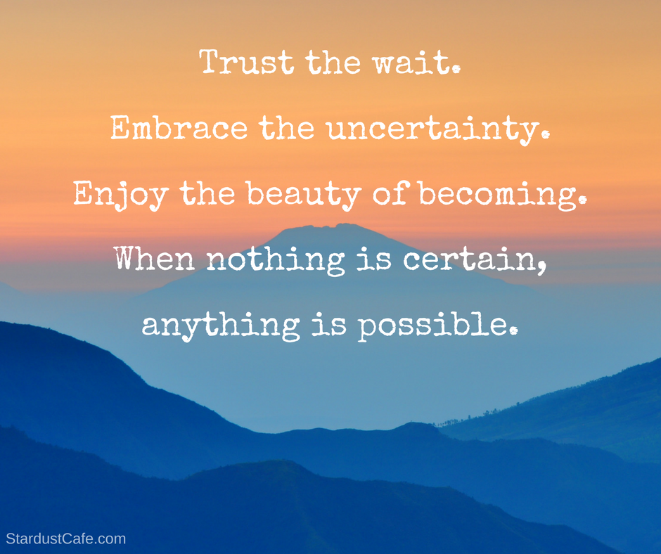Trust the wait. Embrace the uncertainty. Enjoy the beauty of becoming. When nothing is certain, anything is possible.