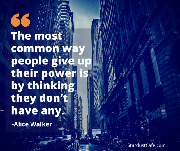 The most common way people give up their power Posted on November 5, 2018 by Louise White The most common way people give up their power is by thinking they don’t have any – Alice Walker