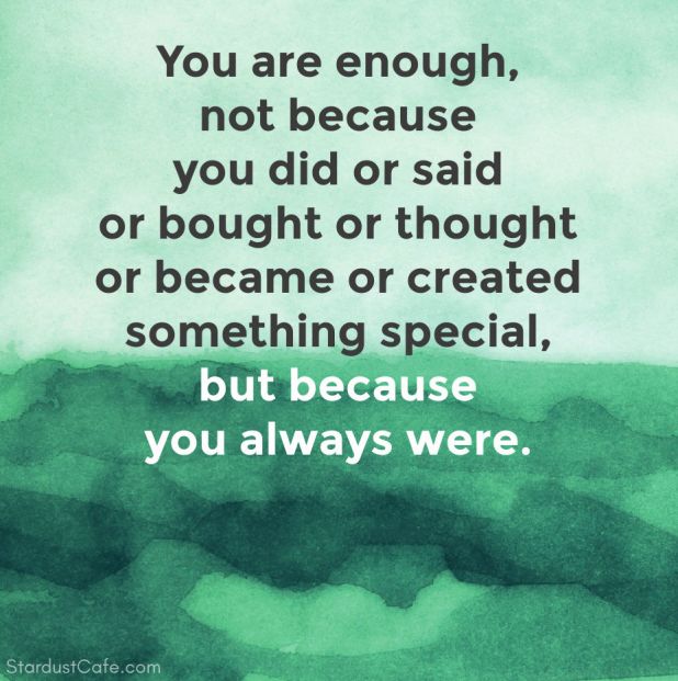 You are enough Posted on October 28, 2021 by Louise White You are enough, not because you did or said or bought or thought or became or created something special, but because you always were. (unknown)