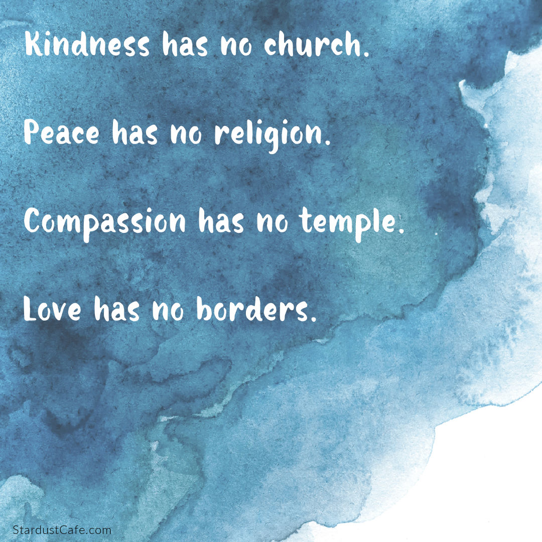 Kindness has no church. Peace has no religion. Compassion has no temple. Love has no borders.