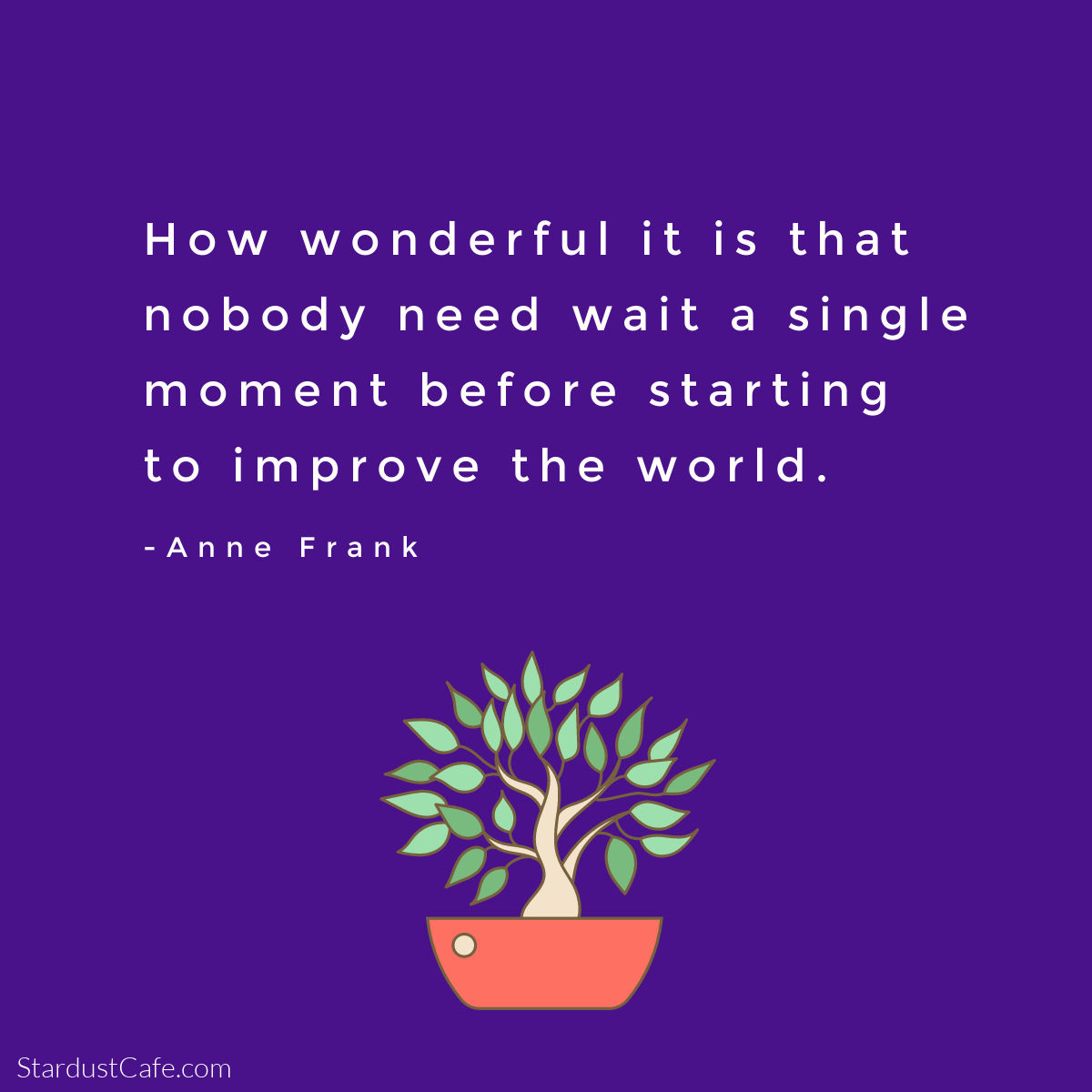 “How wonderful it is that nobody need wait a single moment before starting to improve the world.”