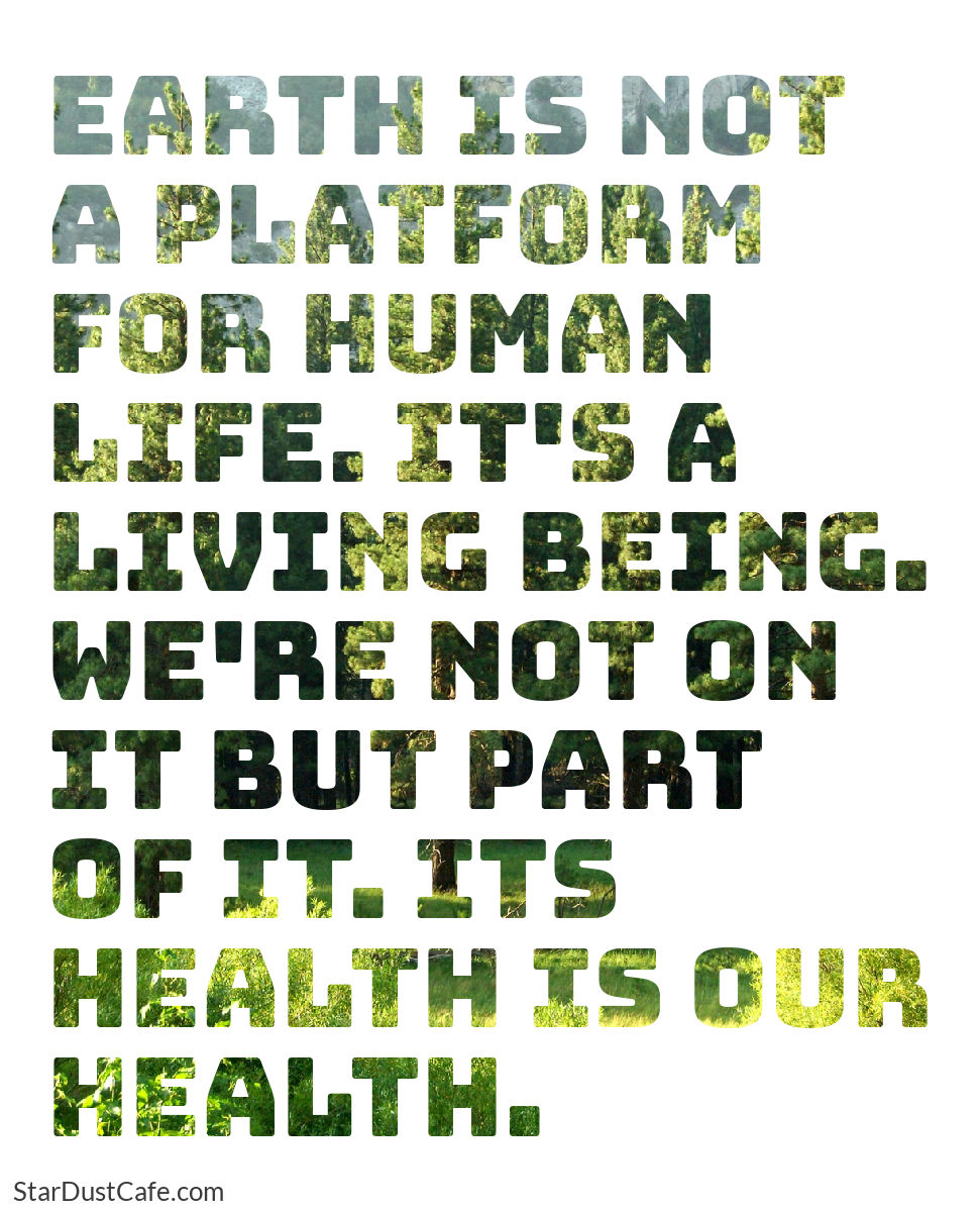 Earth is not a platform for human life. It’s a living being. We’re not on it but part of it. Its health is our health.