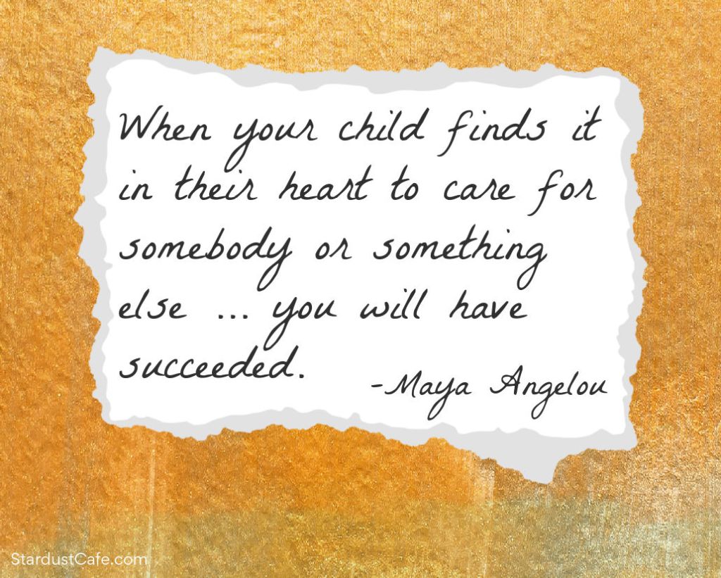 “When you child finds it in their heart to care for somebody or something else … you will have succeeded.”